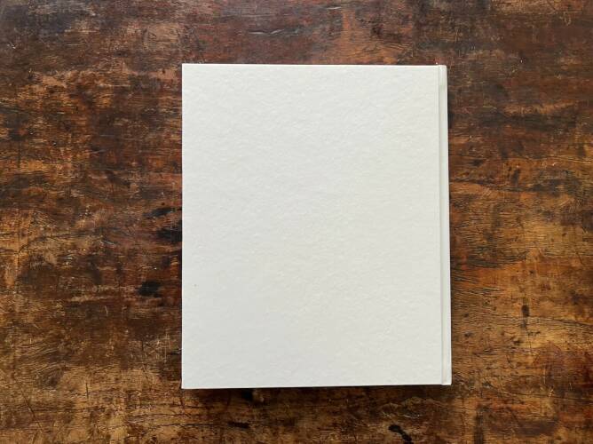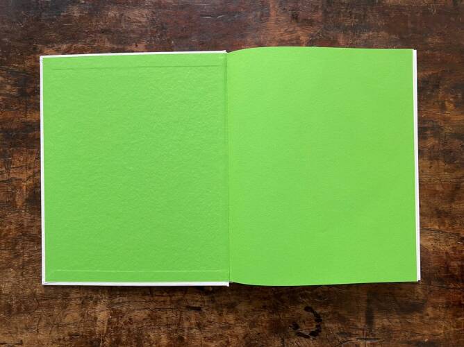 Comments: Embossed hardback with tip-in, Japanese binding, 20 x 24 cm, edition of 300 copies including 20 + 20 AP collector's edition with a print. Paper: Pergraphica Natural Rough and IQ Color Style Recycling Apple (endpaper).