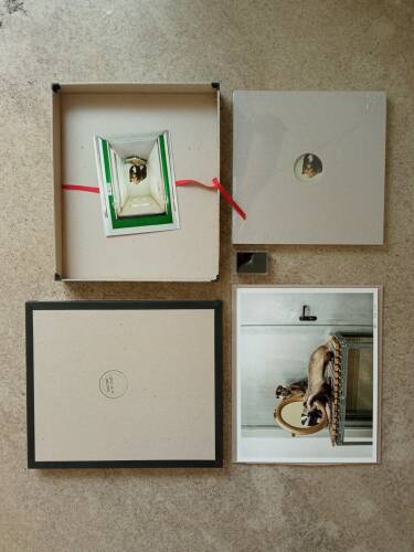 Comments: 21x21cm, hardbound, limited to 50 copies, signed and numbered book 'Skeletons in the Closet' with print 'Monkey, Badger, Mirror', 20x25cm (printed on Hahnemühle Fine Art Ultra Smooth Photo Rag, signed.