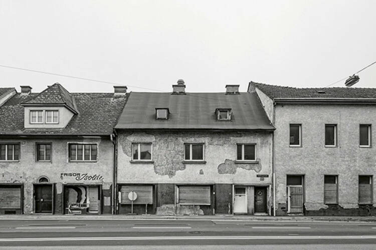 A hairdresser, an Asian market, signs upon signs, curtains, and—behind these—apartments. At first glance, a street like any other, but something irritates. Finally, you realize that the images depict only vacancies. The buildings on Waldeggstrasse have been unoccupied for ten years, and it will be almost another ten years before the “gap” is closed to form an inner-city expressway axis. The images by the Austrian photo artist Otto Hainzl link the dramaturgy of social life with questions about urban development concepts.