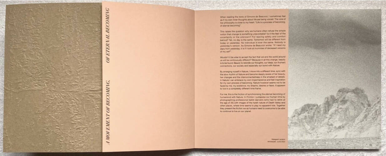 With her newest series ‘Friction’ Margaret Lansink calls for an embrace of the unavoidable change and impermanence of life. She has photographed professional ballet dansers who had to retire at the age of 35 and the rough nature of Death Vally in California where time and therefore age plays no role. With subsequently connecting the two, she encourages us to flow with the ever-changing world. Lansink believes that ‘in change beauty is to be found. Beauty to rekindle our thoughts, our ideas, our (human) connections, our society, our bond with Nature and most importantly our ‘self’.‘