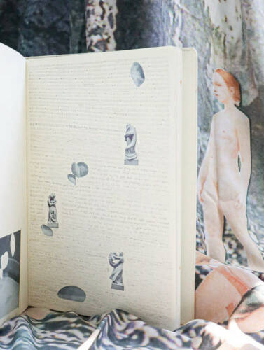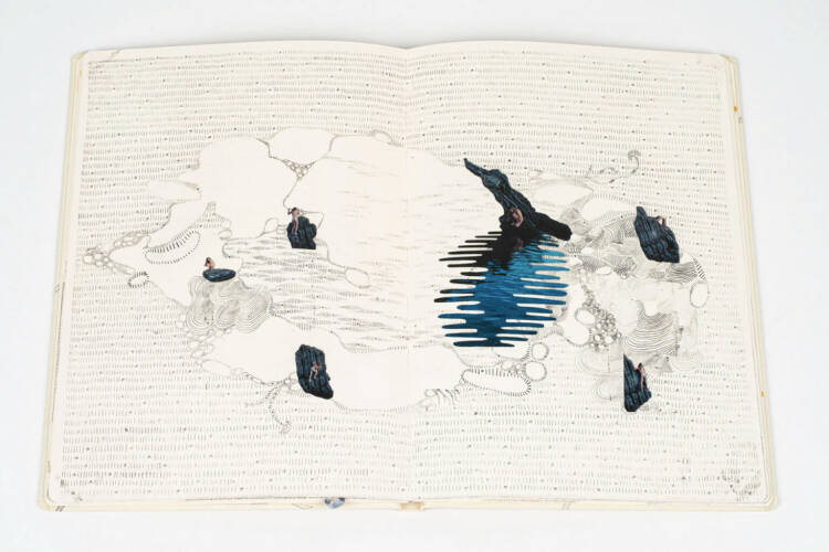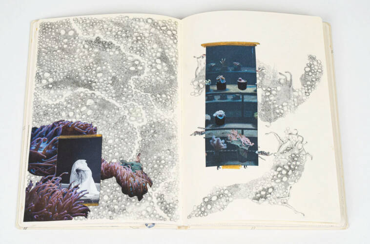 The sketchbook has always been used as a tool to study and understand nature by drawing. My sketchbooks with photographs, drawings and collages become the physical gathering point where impressions and observations of the outside world and my inner world meet. The psychological truth takes physical form and is manifested in the pages of the sketchbook; studying and drawing structures taken from nature gives me time to reflect on how forms and rules coexist. I use myself as subject and object, playing, wondering and questioning my own role in life, and moving between the personal and the archetypal. I map my inner landscapes through the design of the sketchbook's pages. A key in the project is how the sketchbook as a medium never insists on a conclusion or a final answer, but is an investigative medium in itself. This goes hand-in-hand with my fascination with the things we cannot see, such as the micro/macro-cosmos, psychological and emotional experiences and existential questions, which also do not have or can ever have any definitive answers. The sketchbook form allows me to examine these really big questions that take up so much space in me, but which, with words alone, so quickly fall into cliché.