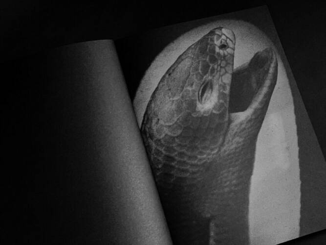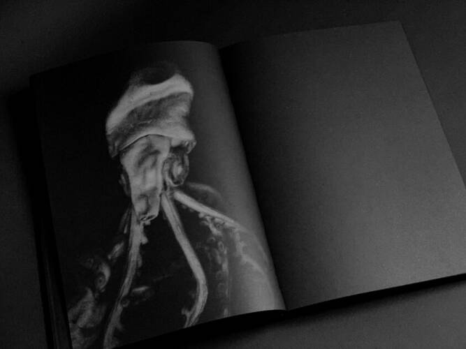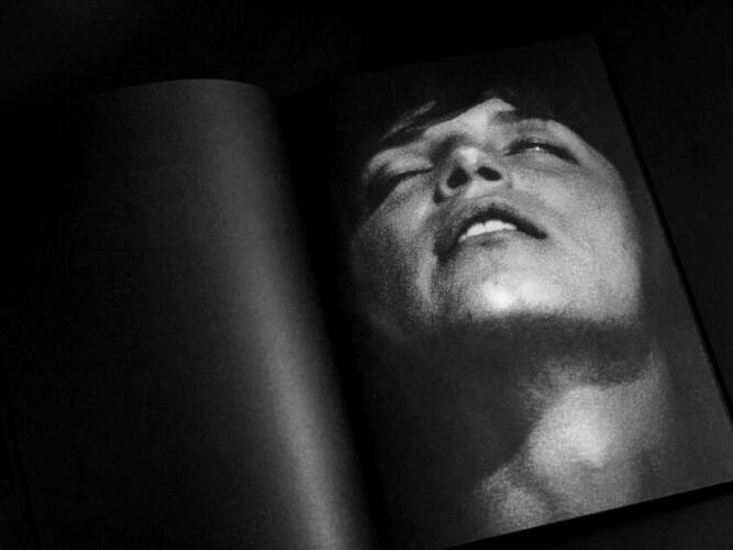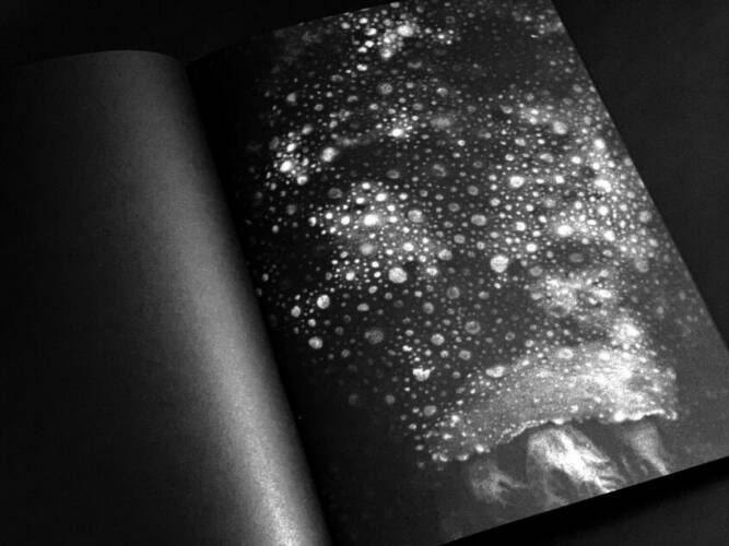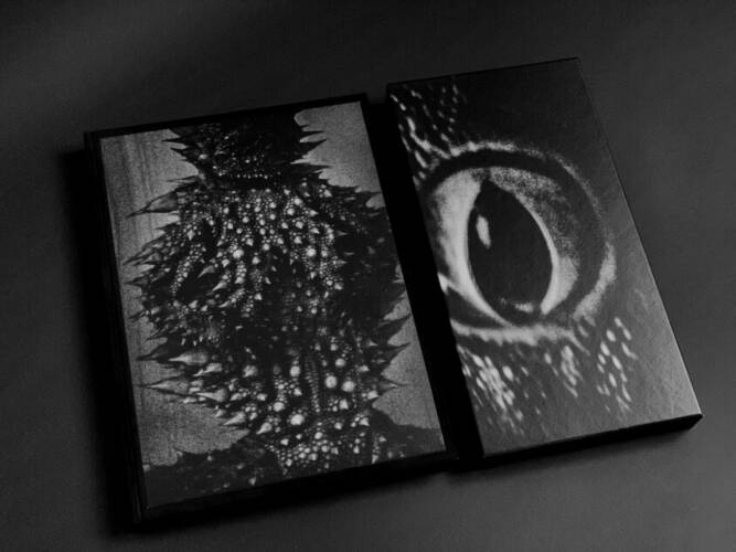 Comments: Hard velvet cover with embossed photo; Black book edges; Duotone printing (two blacks); Foil stamping on the spine; Size: 20 x 28 cm; Book in a three-quarter printed slipcase