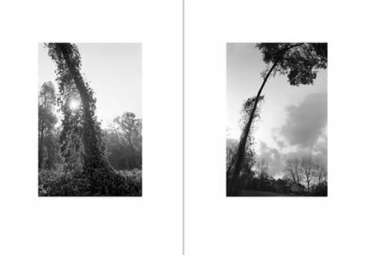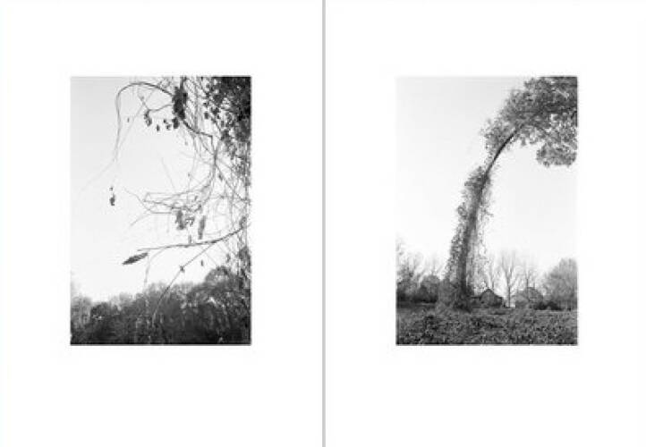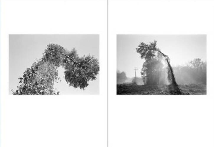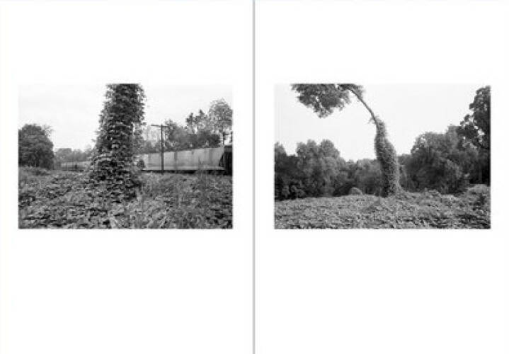 Bent Tree is Mark Steinmetz’s second contribution to our One Picture Book Two series. The book comprises 16 photographs of a peculiarly curved tree that Steinmetz photographed for over twenty years, beginning in the mid-1990s. The tree is a short walk from his home in Athens, Georgia, and stands on its own in a field of kudzu; a set of railroad tracks run alongside it. Steinmetz photographed the tree through different years, seasons, times of day, and types of weather. Today, the backyards of new infill homes crowd up against it, and its seemingly brave, solitary posturing has been lost.