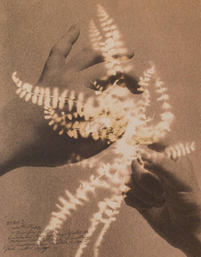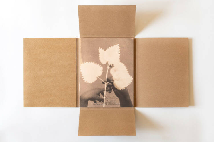 "HERBARIUM i fiori sono rimasti rosa" is an artist's book by Alessandra Calò. One of the distinctive traits of Calò's work is recognizable in the book, the superimposition of different levels that create a unitary, harmonious, symbolic image. In this case the artist has put together three different photographs: those of the hands, the plants and the writings. The hands are those of some frail people with whom Calò carried out a workshop that lasted four months, with a darkroom set up at the Palazzo dei Musei, for a collaborative project called 'Incontri! Art and people' which develops from the project of Reggio Città senza Barriere 'B. Right to beauty', an integral part of the mandate program of the Culture Department of the Municipality of Reggio Emilia. The vegetables, collected in the first phase of the laboratory, are not noble and well-groomed plants, but those that are commonly defined as "weeds", referring to the concept of fragility/diversity understood as "that which does not fall within the canons" and with the aim to discover the beauty of little things. Photographic herbaria were then created using ancient contact printing techniques from the 1800s, such as callotype, which do not favor precision, high resolution, but on the contrary, determine a creative process made up of trial and error which is more “human” and inclusive. Finally, the third level, that of calligraphy, is taken from a herbarium by Antonio Cremona Casoli from 1883-845, preserved in the Civic Museums of Reggio Emilia, which does not have a strictly scientific approach, but is more 'sentimental'. With this last operation, Calò manages to reinterpret and enhance a part of an archive, relating the contemporary with the past.