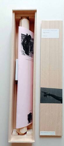 Comments: edition 2/4. handmade book in a role. 53 x 10 x 7 cm. including a stick.