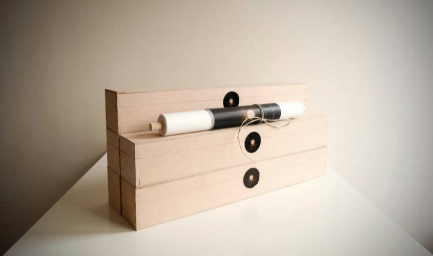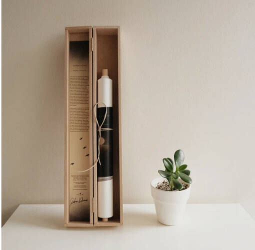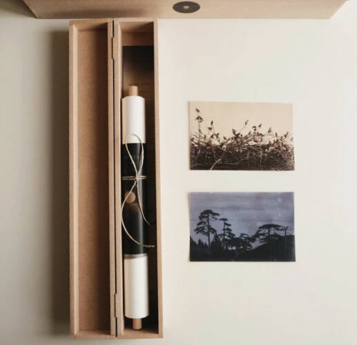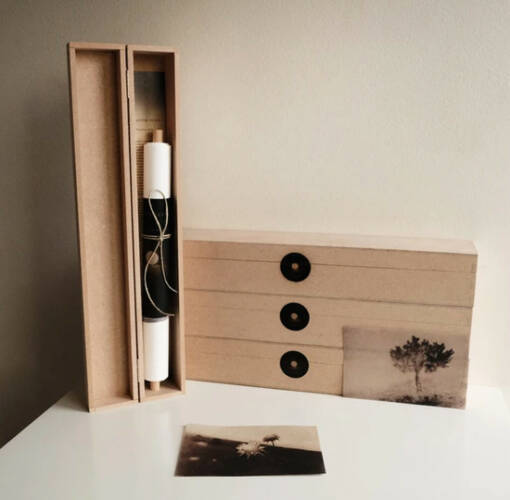 Comments: Handmade, Self-published, Limited Edition of 40 copies, signed and numbered by the artist; Shape/Size: Horizontal paper scroll, 30 cm x 4.33 m, bound by a small rice sheet, housed in a wooden mdf case; Paper: Inkjet print on Hahnemühle Rice Paper, 100 gsm, 100% α-Cellulose, white; Accompanied with 2 small photos, printed on transparent Rice Paper, 110gr.