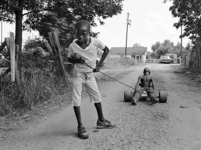 "... Walker Evans was one of Lee’s teachers. Like Evans, Lee has a sensitive eye for both poverty and dignity. But Lee’s southern exposure wasn’t overwhelmingly white, as it was in Evans’s classic "Let Us Now Praise Famous Men." Quite the contrary, Lee is a witness to those at the bottom of U.S. stratification, and their refusal to swallow that status. ...The work is political, because it exposes the violence of poverty inherited from the plantation-economy past. But it is most of all attentiveness to the composure of his subjects that is echoed masterfully in the composition of his shots. ...We are a motley assortment of people in the United States. Our relations are not tidy, not in their beauty, nor in their disastrous disaffection and cruelty. "