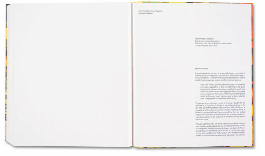 AMERICAN POLYCHRONIC presents the first comprehensive catalogue of Roe Ethridge’s work from 1999 to 2022, comprised of two interlocking threads of his celebrated photographic practice. Ethridge’s artistic and personal work is sequenced chronologically, interwoven with his commercial photography in chronological reverse, together forming a vibrant sequence of harmonies and dissonance, hits and B-sides. This long-form sequence moves fluidly between genres in the pursuit of a distinctive visual language — blending and playfully juxtaposing the realms of fine art, fashion imagery, and advertising with the everyday, personal, and generic. Ethridge explores how new visual experiences can be created through the reproduction and recombination of images, photographing and distorting the real as way of suggesting — or disrupting — the ideal.