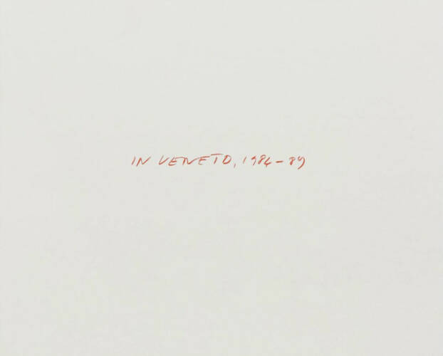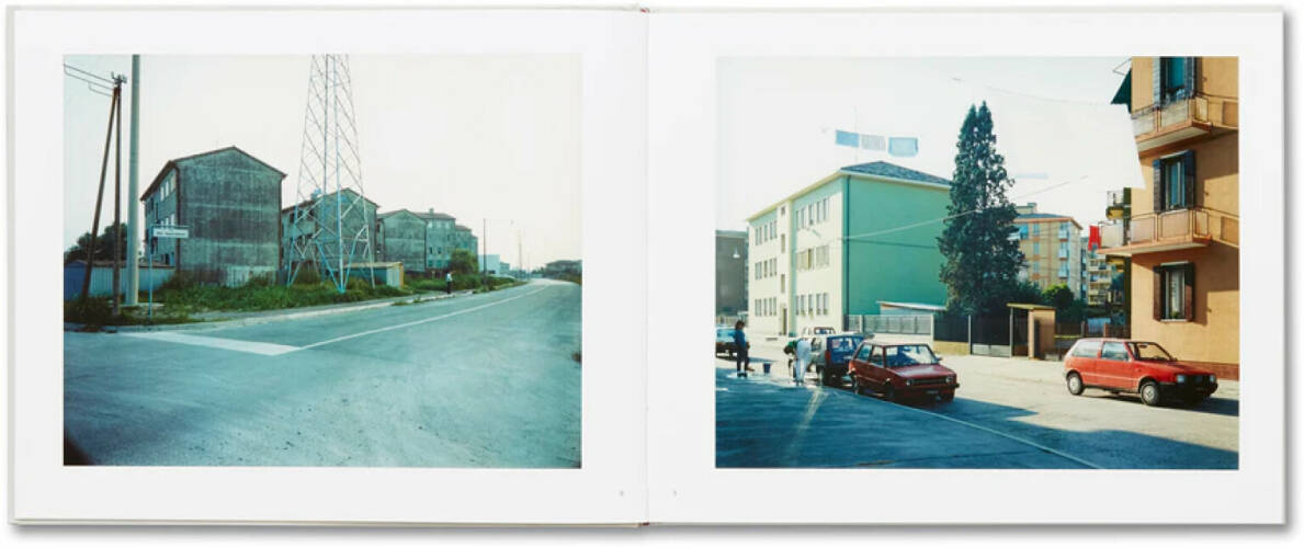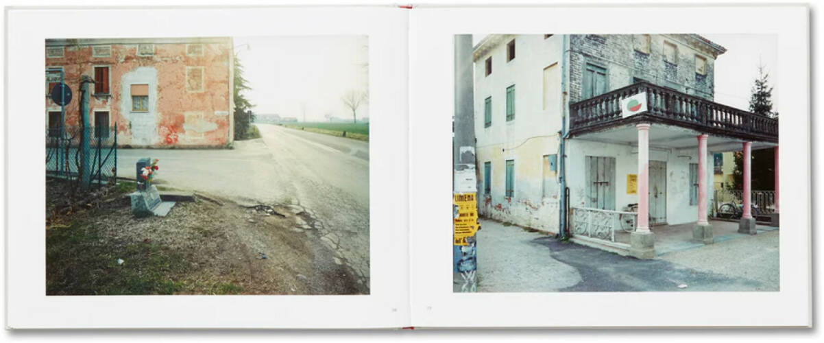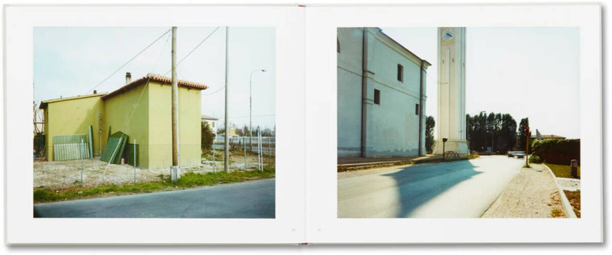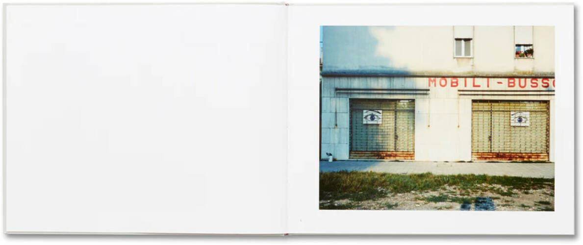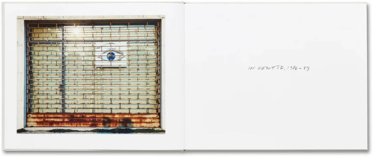 Guido Guidi’s new book, In Veneto 1984-89, opens with a big eye framed in the blind of a shop window in Mestre, an eye which, by opening like a sort of warning, announces the origin of photography itself. This book contains a selection of hitherto unpublished photographs that Guidi took between 1984 and 1989, using a Deardorff 8X10. This was the first time he had used a large format camera for a whole project, which concentrated on an area in the central Veneto, an area known for having rapidly turned into a deeply uncertain, marginal landscape, one intimately hierarchy-free. The places he visited, in the provinces of Treviso, Vicenza, Padua and Venice, seem to be almost part of the same drawing, of the same place, bearing stark testimony to the process of change that has led to the transformation of a huge rural area, driving it into a form of fragmentation known as urban spread. The photographs in these much-loved places seem to re-evoke the three truths described by Robert Adams in “Beauty in Photography”: geography, biography, and metaphor.