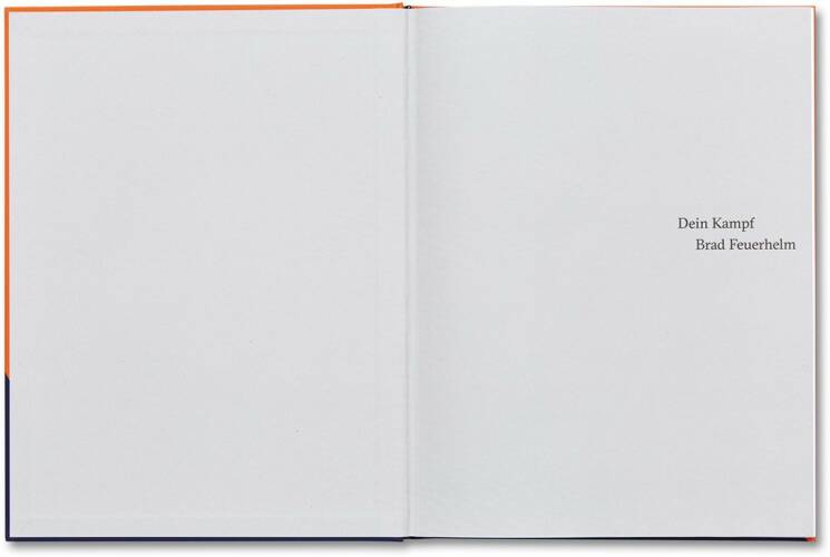 From its title to its formal arrangement of language, Brad Feuerhelm’sDein Kampf suggests a commentary on our cyclical anxieties about ideology. Anxiety is implicit in his photographs and Berlin is their natural backdrop, being a city in which several ideologies collided in the twentieth century. The city exemplifies the quagmire of possibilities in which the tensions of historical narrative and contemporary political and ideological doubt are played out in visual motifs throughout the landscape.