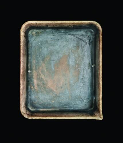 Developer Trays presents its viewer with a rare glimpse into the darkroom experiences of many of the world’s leading photographers. Each tray’s physical appearance is a direct reflection of its treatment: the years of usage, the maintenance of it, the chemicals in the developer, and the level of print agitation. Every accumulated tong mark, silver deposit, and chemical stain seen in these photographs is the result of the artist’s handling and a signature bearing the imprint of its artist.