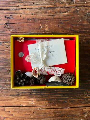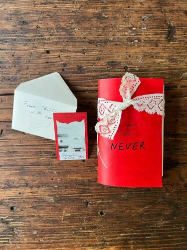Comments: limited edition no. 2/13, handmade book with found objects and a painted unique instant photography print.
