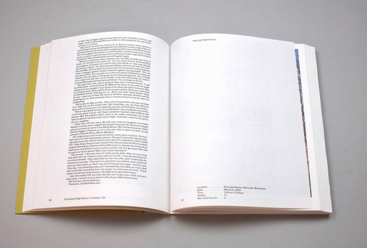 ‘American Origami’ is the result of six years of photographic research, and results in a statement of over 700 photographs which closely examines the epidemic of mass shootings in American schools, weaving together first person interviews, forensic documents, and original photographs. The book takes the reader through a visual journey of shared grief, to illuminate moments of beauty and bring forward moral questions embedded in acts of collective healing. The book is bound in a unique way, and creates a parallel world of the past and the present, showing the silenced landscape interwoven with the personal artifacts created by those left behind.