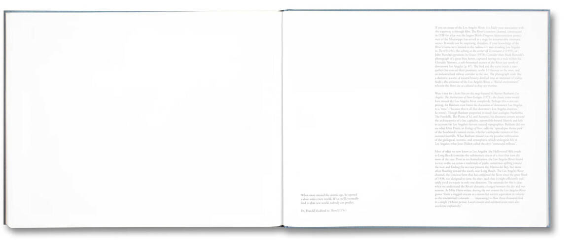 For the past decade, photographer Mark Ruwedel has been compiling an epic photographic account of the natural environment of his home city of Los Angeles. From the stark Californian coast to the vast expanses of the interior – many of which have been further lain bare by wildfires – Ruwedel tracks a unique ecology in constant, if subtle, dialogue with the human life that surrounds it: one where wildness is designed, contested, permitted, or resisted to varying degrees of success. In this first of four volumes, Ruwedel follows the Los Angeles River from Big Tujunga Wash to the Pacific Ocean. Using patient, forensic large- and medium-format photography in black and white, Ruwedel recalls the legacy of nineteenth-century photographer-cartographers such as Carleton Watkins and Timothy O’Sullivan, as well as land artists and New Topographics photographers of the 1970s, while forging his own elucidating relationship with the landscape. The series title Landscapes of Four Ecologies recalls architectural critic Reyner Baynam classic study Los Angeles: The Architecture of Four Ecologies, which describes the city as ‘one of the ecological wonders of the modern world’. The scale of this four-part project, Ruwedel’s most ambitious to date, is an artistic statement in itself: ‘When I say epic,’ he explains, ‘I am thinking of a project that is too large, which has porous boundaries, which is almost out of control.’