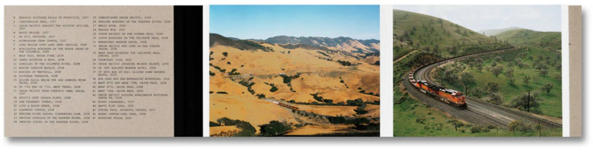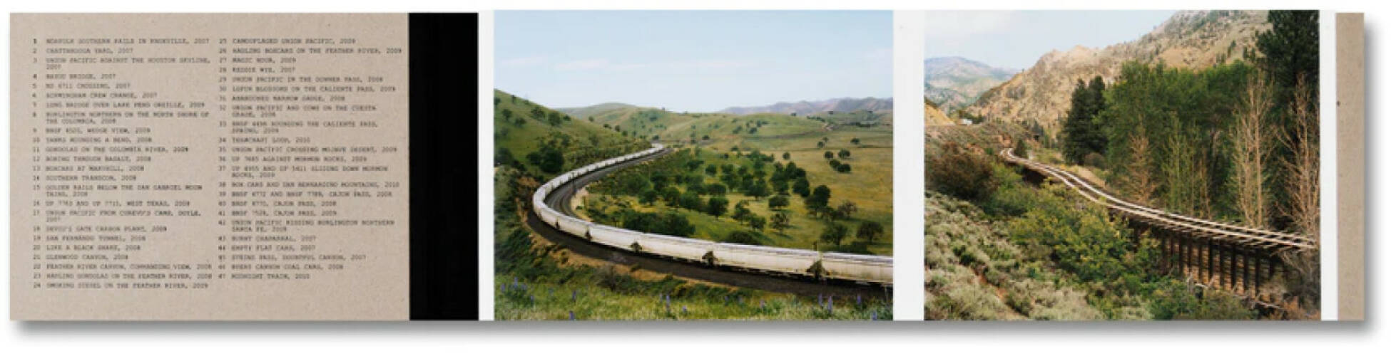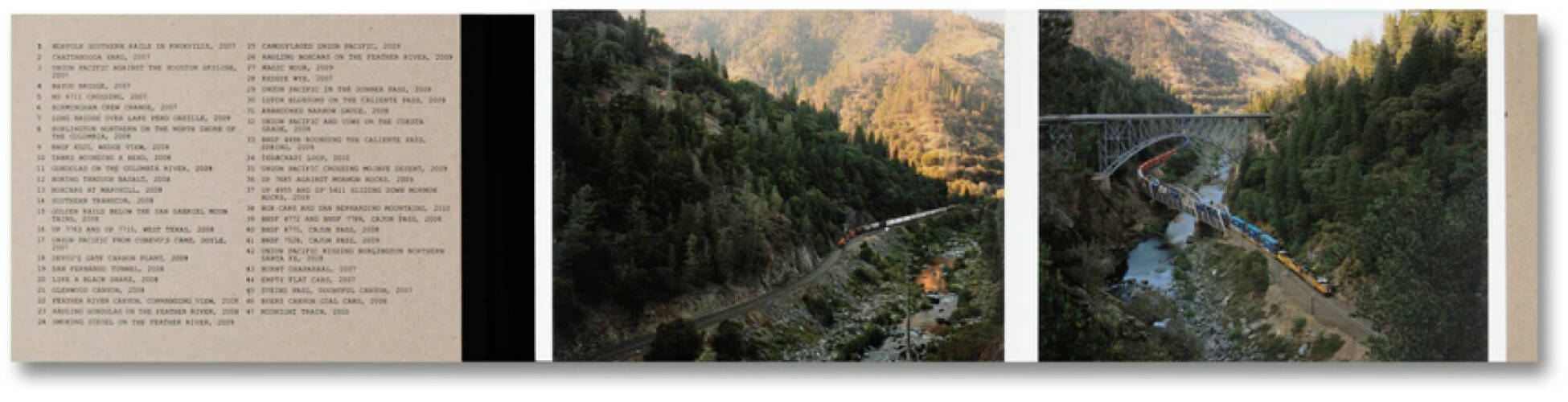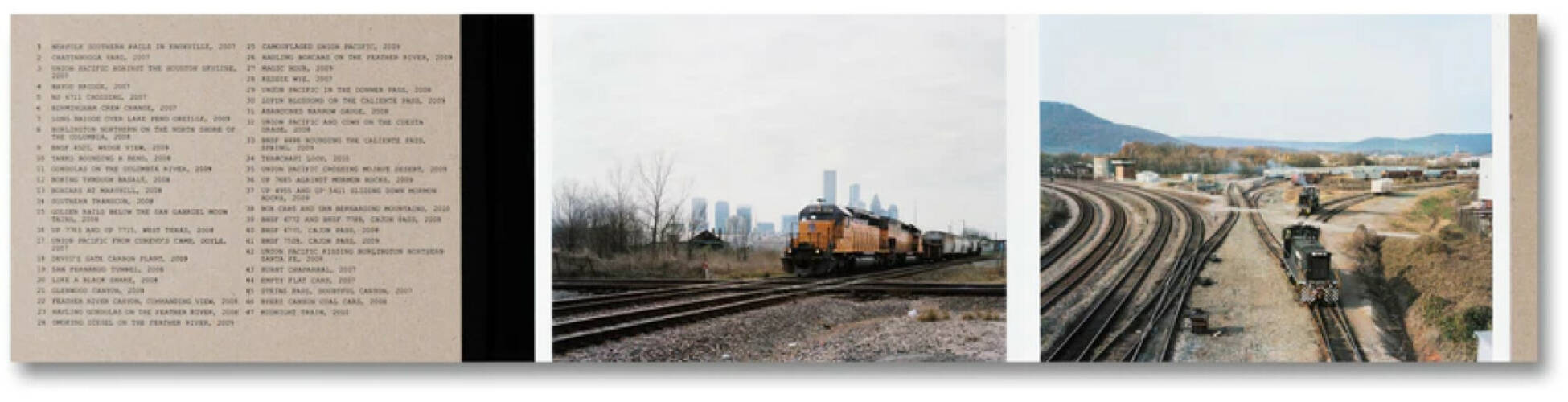 On the other side of this unspooling concertina publication are Kurland’s photographs of the railroads which traverse the American landscape. Deconstructing the familiar mythology of the railway as a pioneering symbol of modernity, these images observe the reality of the ways these routes carve and stain the landscape, often overwhelmed by surrounding nature, leaving behind barren strips of sun-stained asphalt and eerily perfect parallel tracks. Bookended by new texts from Constance Debré and Lily Cho, This Train treats the American landscape as the fabricated tableau that it is, a cultural fable which conceals histories of Chinese migrant labor and the human cost of freedom. Kurland re-appraises an interwoven set of paradigms which retain a tenacious grip on contemporary American life: the nuclear family, the open road, the violence of expansion, and the intractable force of the land itself.