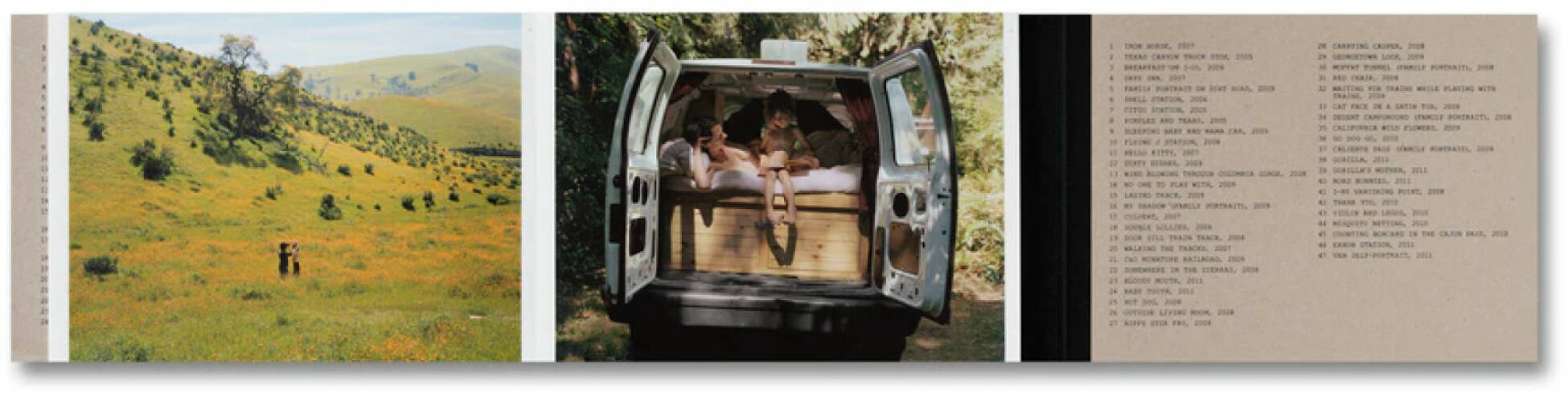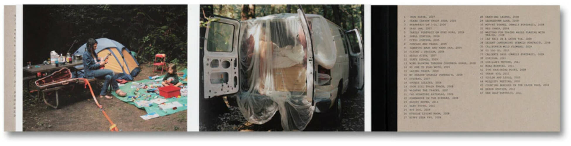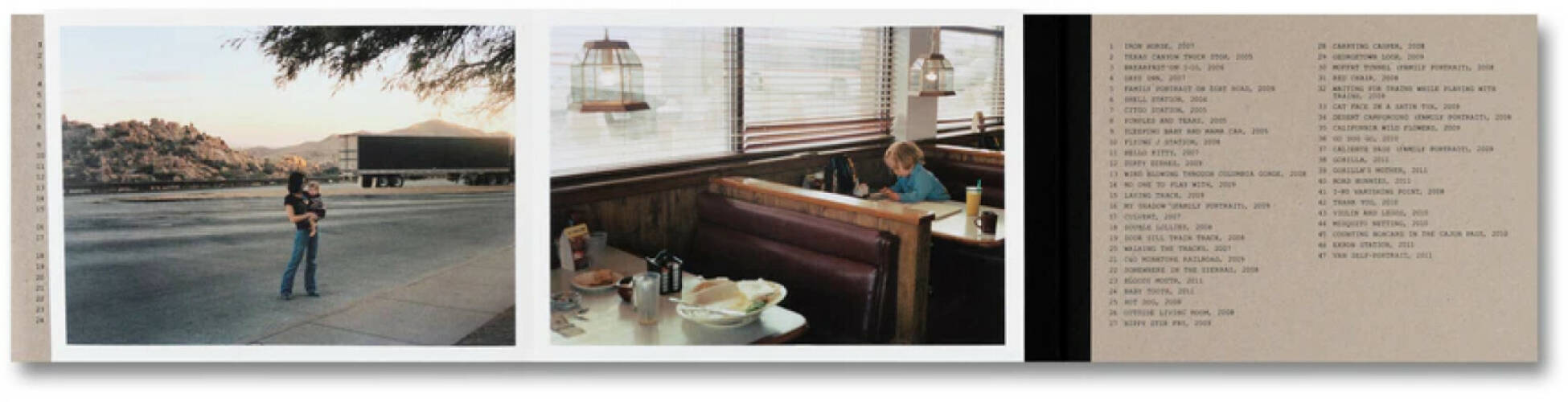 This new publication from Justine Kurland presents two interwoven narratives drawn from the road trips across the United States that she undertook with her young child between the years 2005 and 2010. The first thread is a sequence of arresting large-format photographs of her child and herself, disentangled from the renowned images of roads, trains, infrastructure, and fellow travelers Kurland was making at the same time. Revisiting these photographs, Kurland suggests a clarified reading of them as an anti-history of family and travel, upending the conventional family album to tell a story of queer motherhood and image-making in step with Kurland’s maternal line, for whom crossing the American landscape was a matter of dire necessity.