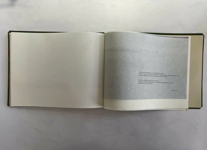 Comments: 250 copies numbered and signed, trade edition. Closed book dimensions: 33x25 cm. Languages: French and English. Paper: Musa Green Book 85 gr Burgo; Pergamenata Naturale Fedrigoni 90 gr; Majestic Candlelight Cream Favini 250 gr. The book is covered with Savanna Wood Green canvas and hot engraved in gold. Handmade perfect binding. Editing by Ilias Georgiadis and Claudine Doury. Book Design by Matilde Vittoria Laricchia. Handcrafted realization by Eugenia Koval.