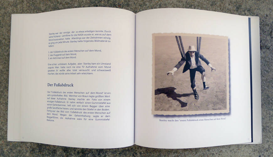 The mother of all conspiracy theories: Did the Americans really land on the Moon or was it all just staged in a studio? "Both"! says Thomas Herbrich - and he can prove it with the photos from the estate of his uncle Stanley Herbrich. Stanley has been NASA Director and what was happening exactly, Thomas Herbrich is showing in his exhibition "The Truth about the Moon Landing".According to the US law it is allowed to publish secret NASA documents after 50 years - finally now Stanley Herbrich's photos can be shown!DIE WAHRHEIT ÜBER DIE MONDLANDUNGDie Mutter aller Verschwörungstheorien: Sind die Amerikaner wirklich auf dem Mond gelandet, oder wurde alles nur im Studio inszeniert?„Beides!“ behauptet Thomas Herbrich – und er kann es mit den Fotos aus dem Nachlass seines Onkels Stanley Herbrich beweisen. Der war NASA Director, und wie das genau mit der Mondlandung lief, zeigt er in seiner Ausstellung „Die Wahrheit über die Mondlandung“.Nach amerikanischem Gesetz müssen 50 Jahre vergehen, bis geheime NASA Dokumente veröffentlicht werden dürfen – jetzt können Stanley Herbrichs Fotos endlich gezeigt werden.