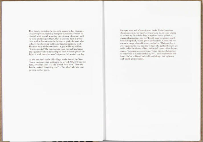Committing to paper the movements, postures, and words of the people I meet gives me the illusion that I am close to them. I don’t speak to them, I only watch them and listen to them. Yet the emotions they arouse in me are real. I may also be trying to discover something about myself through them, their attitudes or their conversations. (Sitting opposite someone in the Métro, I often ask myself, “Why am I not that woman?”)’ Annie Ernaux