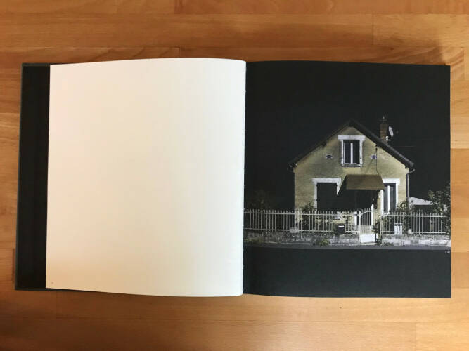 The book depicts a series of houses photographed at night like dormant film sets or solitary and melancholic portraits. The result of night walks, over a period of several years, throughout a residential and suburban France in deep slumber.