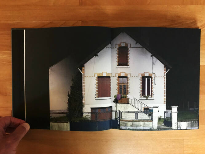 The book depicts a series of houses photographed at night like dormant film sets or solitary and melancholic portraits. The result of night walks, over a period of several years, throughout a residential and suburban France in deep slumber.