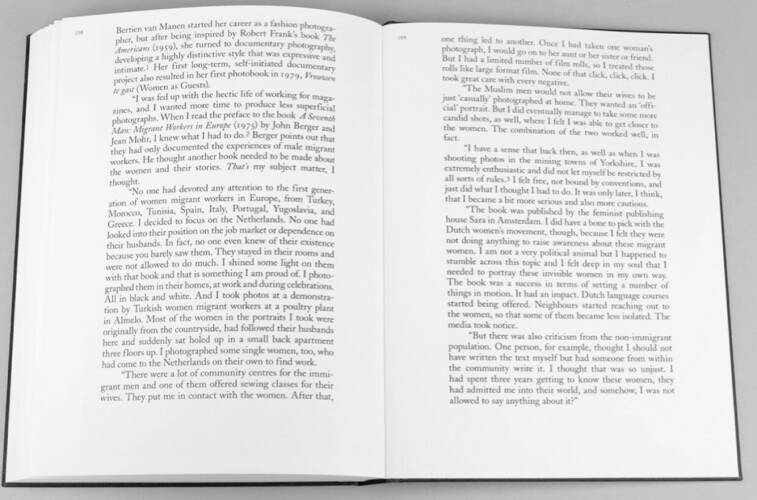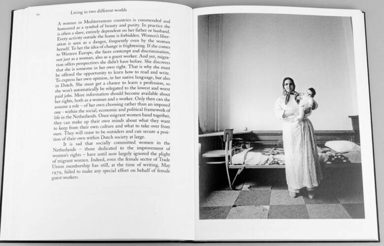 Bertien van Manen (1935-2024) photographed in the 1970’s female labor migrants, and the wives of labor migrants, who came to the Netherlands in the context of family reunification. She portrayed Turkish, Moroccan, Tunisian, Spanish, Yugoslavian, Portugese, Greek and Italian women. At home, work, parties and leisure activities, often struggling to survive in a foreign culture. These photographs resulted in her first book ‘Vrouwen te Gast’, published in 1979. In 2024 Bertien revisited her own photographs and texts to make a new, more contemporary, edit of her first work. For ‘I am the only woman there’ she updated the book with new discovered photographs from her archive and new texts, by herself and Kim Knoppers.