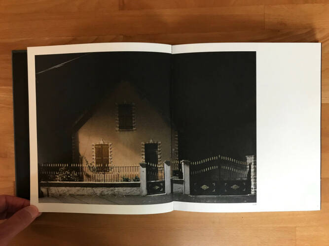 The book depicts a series of houses photographed at night like dormant film sets or solitary and melancholic portraits. The result of night walks, over a period of several years, throughout a residential and suburban France in deep slumber.