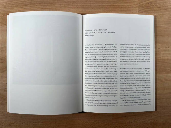 For the last twenty years of his life, Cy Twombly returned annually to Lexington, his hometown in the Shenandoah Valley of Virginia. As evidence of his attachment, he bought a house, and during extended visits in both spring and fall, he created a number of important works in modest studios he rented nearby. In large part, however, he spent his days observing the rhythms of the small college town, taking long reflective drives in the countryside, and exploring entertainments with a small circle of acquaintances. One of those was photographer Rob McDonald.