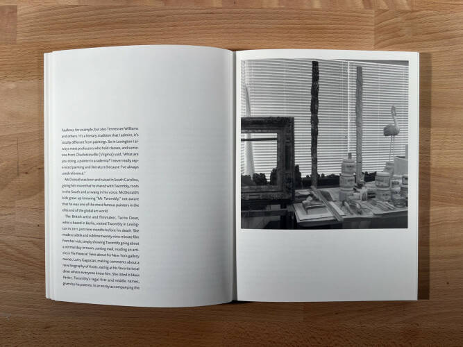 The exhibition is organized around three views of places where Twombly worked and which serve as touchstones for McDonald’s reflections on their many conversations about topics ranging from Twombly’s life and work to curiosities of life in the local community.