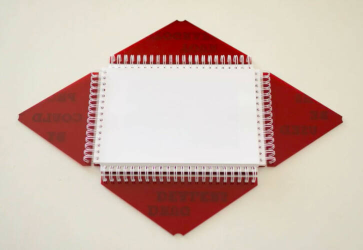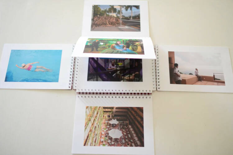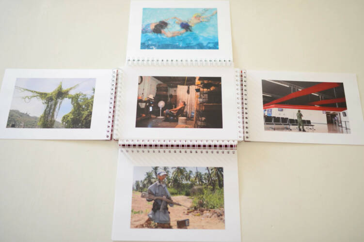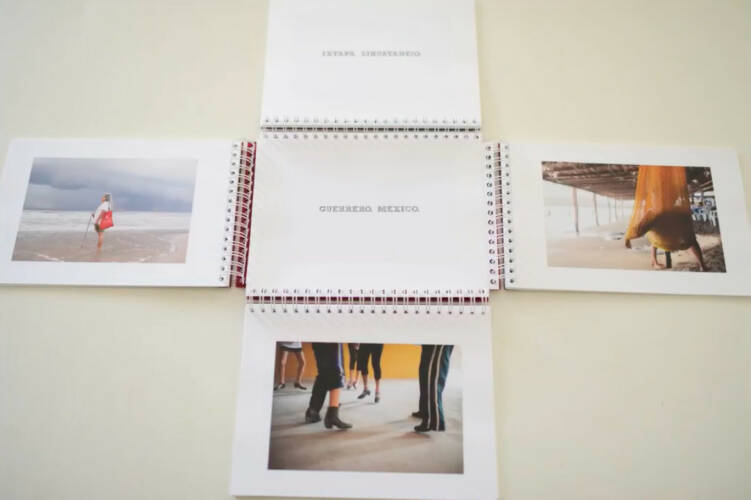 The photobook showcases 96 photographs. Its four way opening overlays the images making almost 350 possible different image configurations — an indication of the complex juxtapositions of everyday life in Mexico.