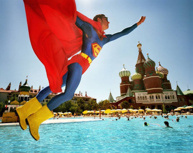 Welcome to the world of fake holidays. Although authenticity and originality play a crucial role when choosing a holiday, the commercialisation of “the most beautiful time of year“ is becoming more and more obscure. Reiner Riedler investigates this trend and reports on the most absurd settings of fun parks worldwide in his melancholic photo book “Fake Holidays“. Riedler shows holidaymakers who pose in front of wallpaper showing erupting volcanoes while dining calmly. Or Arabs in a skiing hall in Dubai with outside temperatures of 40 degrees. The holidaymaker pays to pose in front of a copy of the original. Born in 1968 in Austria, Riedler spent years travelling the world in order to document these. With brief headings such as ‘longing’, ‘transformation’ or ‘passion’, the brutal irony and purchasable reality becomes apparent. Reality is what we see. And what we see exceeds our imagination by far.