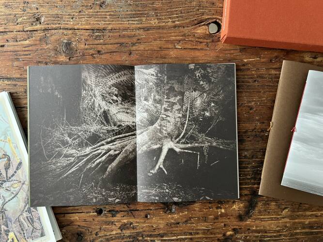 In March 2024, Regina Anzenberger traveled to Australia, again. Ever since taking her first trip there in 1989, her artistic work has been repeatedly inspired by the natural world of this continent. Over four chapters: Prolog, Riverbed Rocks, Rainforest, and Floating Bonds, she tells us the story of a special friendship, giant ferns, the stones and vegetation in a riverbed, an endless beach, and mysterious seahorses. With her painted-over photographs, expanded with drawings and found objects from nature, the artist creates not only a unique view of the fifth continent in the form of visual poetry, but also a metaphor for life itself.