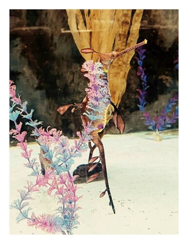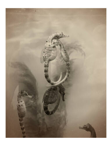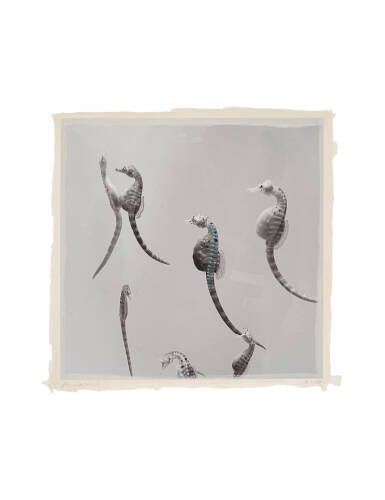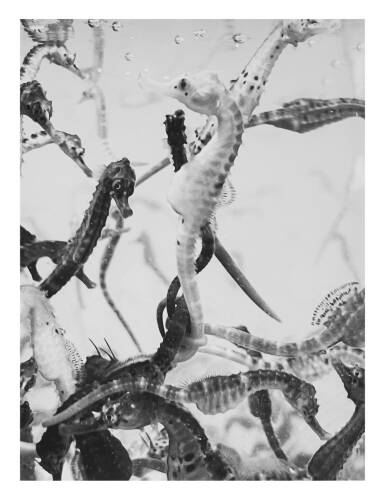 'It wasn't until I looked through the pictures a second time that they became my muses. Because I hadn't noticed the concentrated look that they direct at the viewer outside the aquarium at first. Dismissed as a tourist attraction, I put the work aside. But it didn't take long for their connections to each other in the density of the aquarium to inspire and capture me in such a way that I developed a growing relationship with them. Finally, I read two books about seahorses and found the author Andrea Grill, who I asked to write more about these extraordinary creatures.' says Regina Anzenberger.