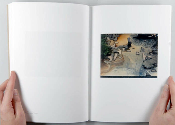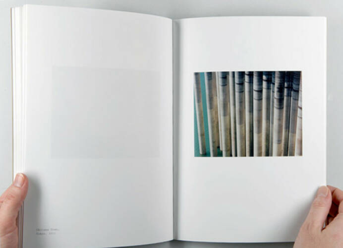 Traditionally his photographic prints have been made on a large scale, so as to immerse the viewer in his images. This scale reveals the extraordinary detail contained within his images, giving the sense of a heightened version of reality. However, he recently presented a small group of photographs as contact prints, no more than a few centimetres wide. By compressing his borrowed landscapes in this way, a further layer of mystery is applied to these images. Rather than overpowering us with their scale, they become more delicate, more fragile as the geometric lines and abstract qualities of these compositions is emphasized. These contact prints provided the inspiration for this book."