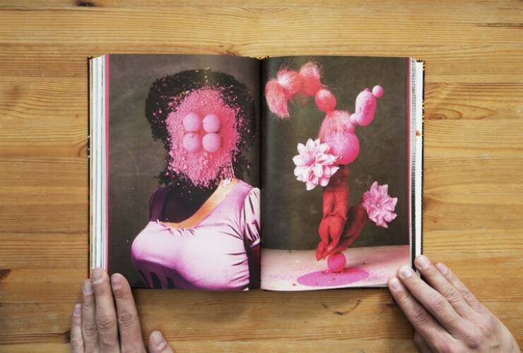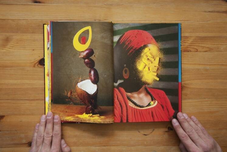 LORENZO VITTURI’s work is often found at the intersection of sculpture and photography and his latest project, Dalston Anatomy, saw him spend time in London’s Ridley Road Market taking pictures, making sculptures and creating collages with materials and objects he found amongst the debris of the marketplace. Vitturi’s process is largely concerned with the creation, consumption and preservation of images. The makeshift sculptures he created mimic the organic and temporary nature of the market, and their documentation is the way in which they endure after diminishing. The book is bound in exquisite Vlisco fabrics in bright patterns that are reminiscent of African markets and accompanied by a poem by Sam Berkson that layers voices from the market to draw on its disjointed and surreal atmosphere.