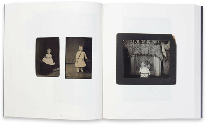 The Hidden Mother is comprised of 1,002 photographs (from daguerreotypes and tintypes to cartes de visite and cabinet cards), all examples of a now redundant practice: to cloak or hide a parent within the background of a child’s portrait, a common procedure from the advent of photography up until the 1920s, when exposure times were relative slow, and a hidden parent was required to hold the child still.
