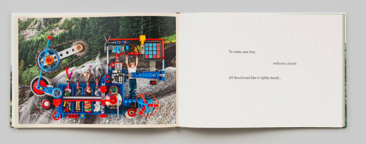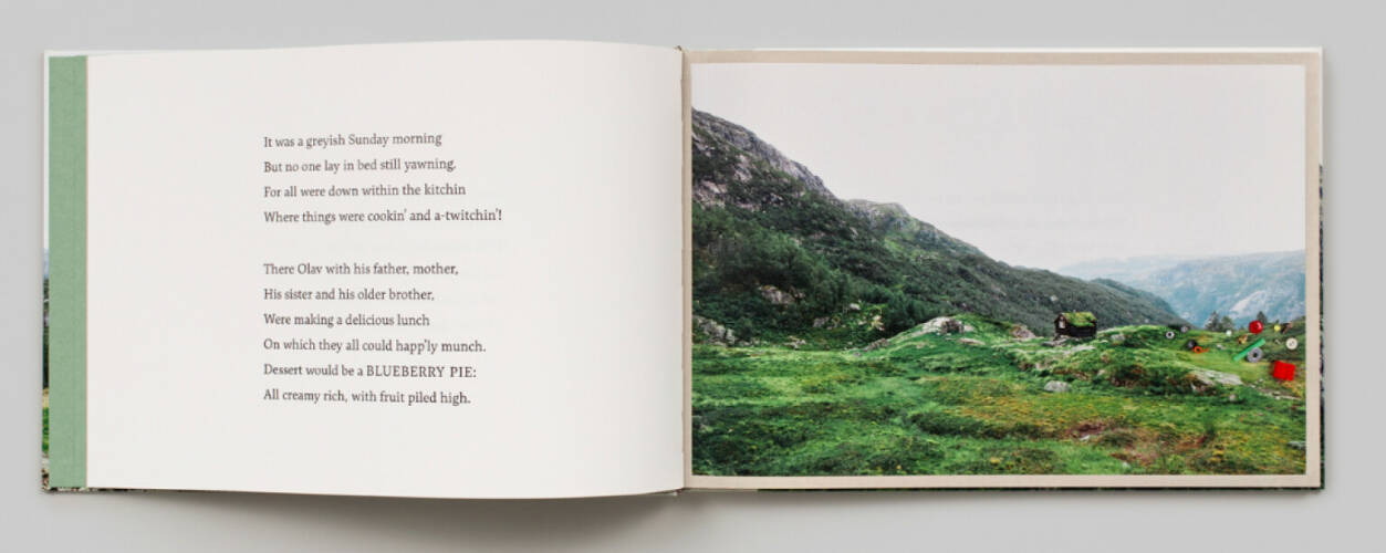 Photographer Jan von Holleben and author Monte Packham have made a book for children in which master of invention, Olav, spends the day building fantastical machines for purpose and pleasure only to discover the most useful and creative machine of all. Set in the wonder-inspiring Norwegian landscape, the story is told in lively, playful verse. The photographic illustrations are themselves a kind of invention, each made with a photographic print and assembled objects that are re-photographed to create a convincing final image. The book is typeset in Andersen, a typeface designed by Thierry Fétiveau with young and dyslexic readers in mind.