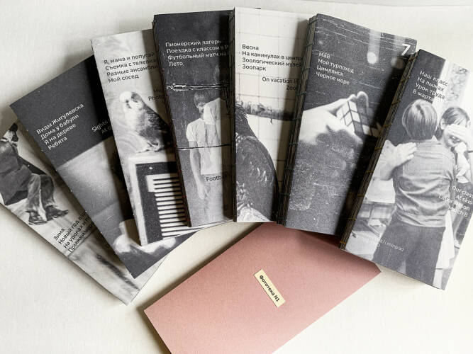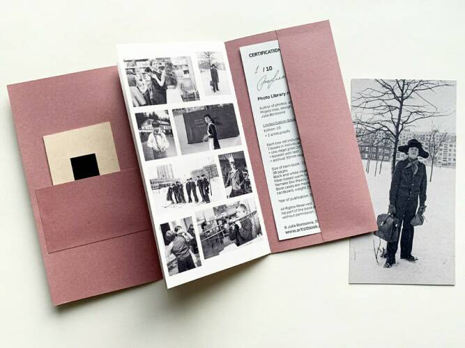 Comments: All books in the series share the same format: 10 × 19 cm. Each page is triple-folded and sewn together, creating different combinations of photos. When you hold the book, you’re invited to open and fold the pages in your own way, forming personal collages of images. Each book comes in an individual slipcase, and every issue features a spine of a different color. Limited Edition.