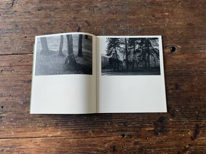 The two volumes titled “An Anticipation” form a series that contemplates both the primal and the artificial landscapes associated with trees, presented as a pair of contrasting booklets. With an effort to minimize subjective interpretation, the lens is directed toward landscapes that contain inherent contradictions.