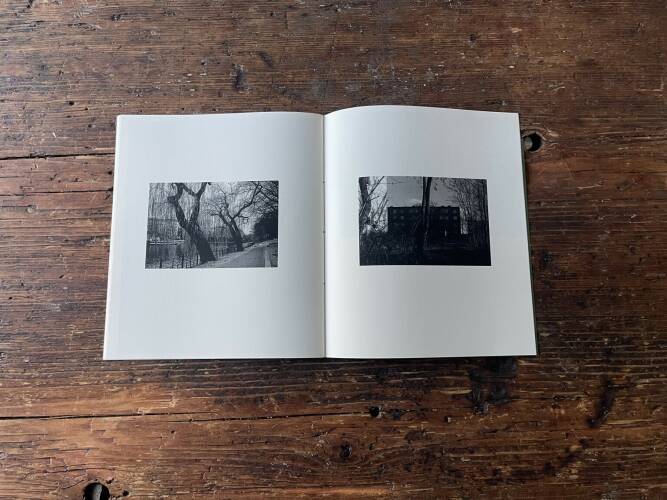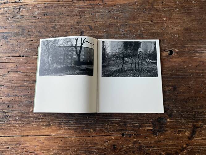 In contrast, the green booklet(#3) centers on trees that have grown freely and untended, left to flourish in abandoned spaces against the backdrop of Berlin’s artificial urban scenery. It portrays these sights as part of the city’s chaotic and desolate social landscape. What, then, can “primeval” or “original” truly mean in a place where almost no untouched forest remains following the Industrial Revolution? Is it even possible for a place to exist without traces of human presence? One might say that the photographs in the red and green booklets ultimately depict the same landscape, each in its own way.