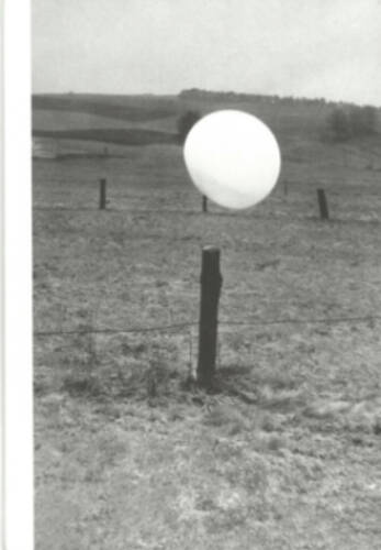 When the inner-German border was established, West Germans would attach leaflets and magazines — and subsequently books too — to gas-filled balloons installed with a timer mechanism that dropped them in the GDR if wind conditions were favourable. In the absence of any contextualization, the balloons could be many things: a child’s plaything, land art, a performative installation, a meteorological measuring instrument, or even a means of broadcasting political concerns. Balloons juxtaposes photos from the Stasi archives with texts in the form of logs documenting the flight of the transport balloons and the consequences of their landing. The images in the compilation vividly convey everyday life in the GDR: a litany of smashed roofs, torn power cables and destroyed leaflets; a routine existence that might have looked this way or something like it.