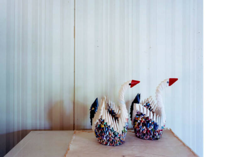The photographs that were taken during the stay in Itoshima bear names as ›Towel‹, ›Wooden House‹, ›Palm Tree‹, ›Two Houses One Car‹, ›Fly Swat‹ or ›Gas Station‹. And that's exactly what can be seen in the pictures. And yet they are puzzling images. With Deserted landscapes and cityscapes, houses, trees, cars, interiors and everyday objects Juliane Eirich forms a kaleidoscope of barely interpretable impressions. It's all about the question, how environment and nature shape the way of life and culture and how people in return shape and cultivate nature and arrange themselves.