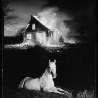 Flowers Drink the River spans the first two years of Pia’s gender transition, as she photographs her small community in rural Maine, and the beauty and terror of living as a trans woman in a small right-wing town. Scenes of moths and floating spider silk, mud-drenched bodies intertwining, a burning house, girlfriends pissing on each other from tree branches, nocturnal animals, and euphoric rituals adorn flash-soaked landscapes. Under the moon, the boundaries between people, animals, and the land soften and blur. Flowers Drink the River is an animistic search for beauty, resistance, safety, and magic in a world often devoid of these things. It’s a love note to rural working-class people, trans women, lesbians, queer people and the backwoods of central Maine. Pia finds beauty and belonging as she creates a utopia hidden just barely out of reach.