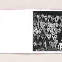 Presented as large format 3/4 Swiss bound volume, Flowers Drink the River's cover is replete with reproductions of an aged pink craft paper that Pia found stashed in an abandoned house down the road from her home. She then covered a spider web found along the river in a powdered red pigment and adhered it to the paper. Over this a cloth nameplate has been added, while the inside cover features a tipped on facsimile 4x5" contact print that she made in her bathroom.