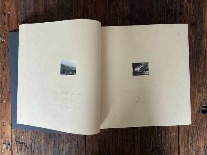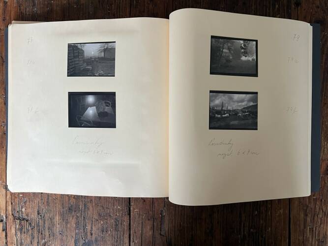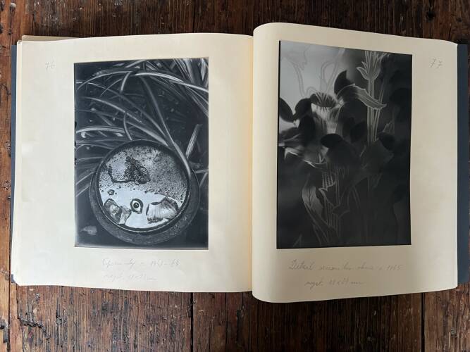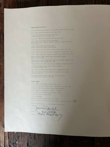 83 black-and-white lithographic reproductions based on the original negatives from the collection of M. Khol, as well as 1 original black-and-white photograph by M. Khol; published in the year marking the 100th anniversary of the birth and the 20th anniversary of the death of J. Sudek; published by MoraviaPress, Břeclav, 1996, copy 106/300, signed by the book’s contributors: Jaroslav Boček (text), Pavel Jedlička (design), and Miroslav Khol (photographs); the publication was awarded in the competition “The Most Beautiful Czech Book of 1996” and was also named Best Photography Book of 1996/97; softcover, very good condition, original protective cloth case.