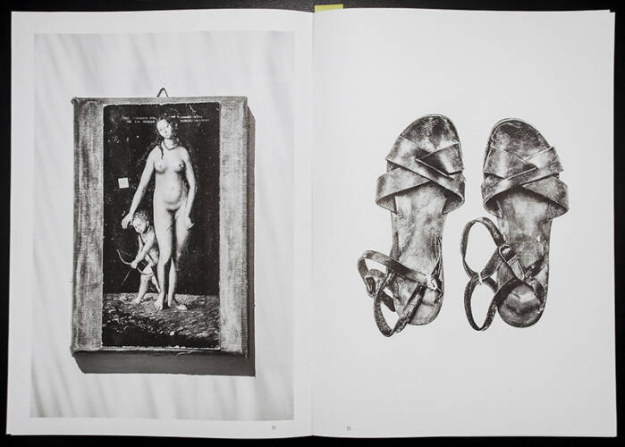MEMORABILIA 2010-2014 / Painter Emese Kudász died on 22 November, 2010. In the years that followed, her son Gábor Arion Kudász catalogued her entire estate, so as to establish a guide to the workings of memory. The artistic research disrupted the order she had created, something that surrounded her and was distinctively her own. Through the cracks of this disrupted order, hidden aspects of her personality emerged, together with a previously unrealised coherence among her objects; it is no longer possible to tell whether these had existed before or were only the result of the intervention. The structure of the estate itself encouraged the creation of collections as it comprises very individual, occasionally downright extravagant, corpuses forming the backbone of this exhibition and the accompanying book: hundreds of four-leaved clovers pressed between newspaper, wardrobe items kept by seasons and colours, bookshelves, printing blocks of an aged catalogue and endless personal objects, messages from the grave.