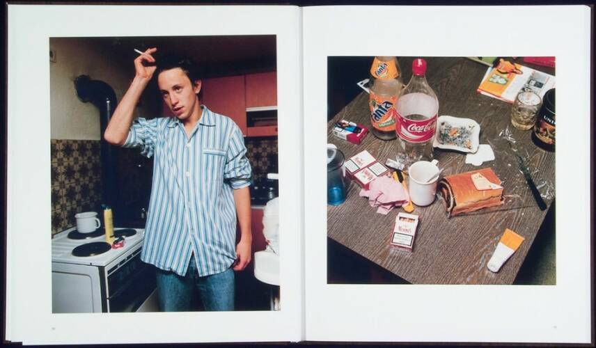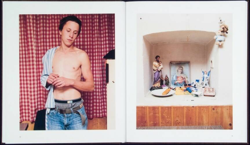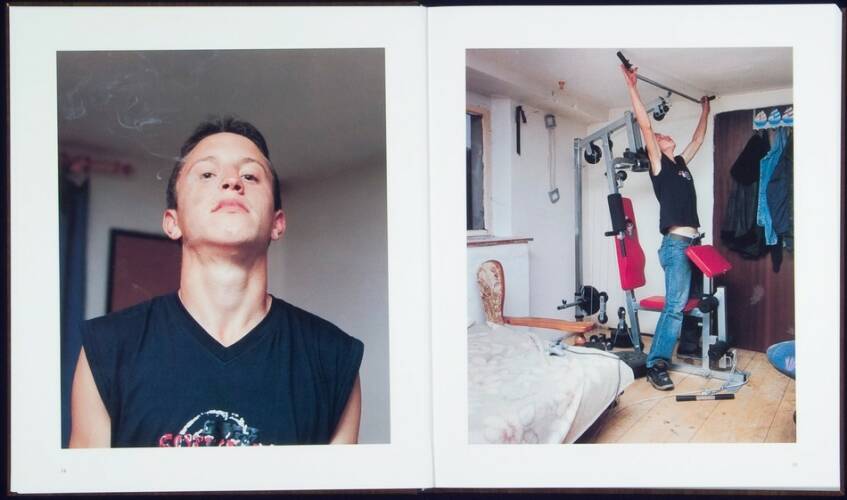 “Tom” is a photo-reportage about the domestic circumstances of a young man reaching puberty. Tom lives in a small village in the countryside in Upper-Austria. He works at a construction company, lives together with his mother, his stepfather and his stepbrother on a desolate farm in the rural middle of nowhere. In his free time Tom listens to his stereo or hangs out in his car. He meets his Turkish friends, smokes from a pack of Memphis cigarettes and works-out on his home gym. He often wears his favourite sweater with the words “Versace” while he works, and is currently serving for a year in the Austrian army. From 2004 until 2006, Paul Kranzler photographed Tom, his family and his surroundings. As in the book “Land of Milk and Honey”, Paul captured the intimacy of his subject. From Tom working out or playing with the family dog in the yard, all is captured in bold and stark color-photographs that only Kranzler could take. The book includes a text from Markus Binder, the drummer and songwriter for the band “Attwenger”.