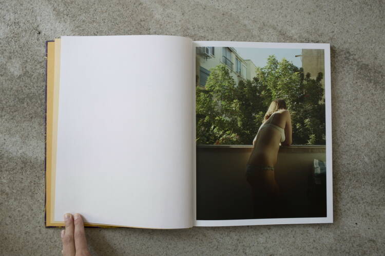The images of these four women, in their underclothes or partially nude, are interspersed with landscape and detailed views of the city - old cars, over grown palm trees, porticos, puddles of water..Mixing color and black&white, hard flash and natural light, this book creates a sense of ambiguity placing the viewer in between the intimacy of the portraits and the deserted city of Tel Aviv.