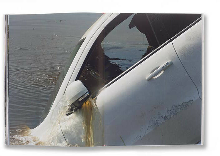 In this his latest artist book, Ethridge conflates a rich array of photographic tropes, combining personal documentary images made in western Palm Beach County, his mother’s childhood home, with surreal collage works, and a series discarded from a Chanel fashion shoot. These are interwoven with what appears to be a carefully directed scene depicting a teeth-white Durango SUV sinking into and then being retrieved from a canal. The clash of visual styles, histories and meaning establish a flatline of dissonance underscored by the touchline admonition of the neon title - SACRIFICE YOUR BODY.