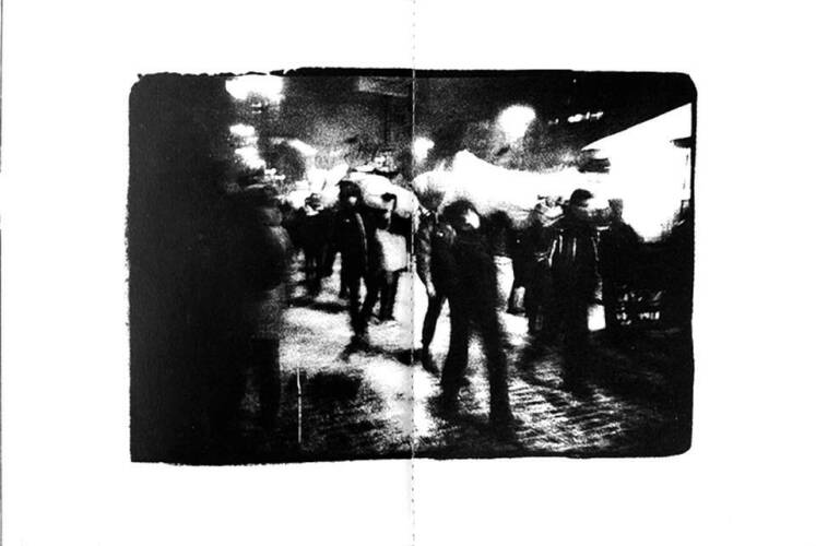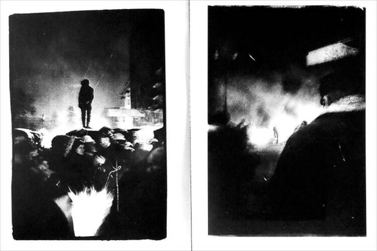I couldn’t remain indifferent to what was happening in the country. I called a fellow photographer and friend, Sergey Lebedinskyy, and the decision was made to go to Kiev immediately. We bought tickets and the following day we were running on the Maidan in freezing temperatures, holding onto our gear, aiming our cameras at the crowd and trying to keep warm, sharing tea and sandwiches with the activists. Twice God saved us from a “Berkut” attack. With no helmets or gas masks, not even the orange press coat, it was not safe. The latter wouldn’t have saved us anyway as the press were being systematically targeted by the police. We stayed on the Maidan for two days documenting the events as much as we could. We’re still alive without scratches or injuries. As I write these words I’m sitting in a train, Sergey is in a plane, our films and impressions are with us”.